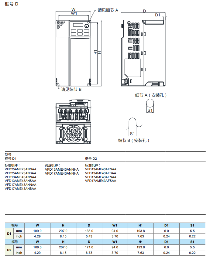 | VFD25 AME23ANNAA | 7.5 | 5.5 | 25 | D | 2 | ||