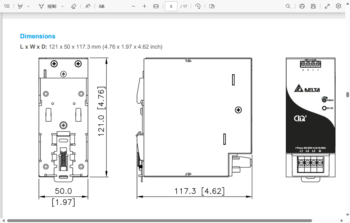 尺寸(H × W × D) mm 121 × 50 × 117.3 121 × 50 × 117.3 121 × 70 × 117.3 121 × 140 × 117.3 121 × 255 × 117.3