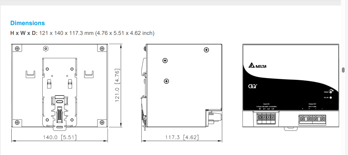 | 尺寸(H × W × D) | mm | 121 × 50 × 117.3 | 121 × 50 × 117.3 | 121 × 70 × 117.3 | 121 × 140 × 117.3 | 121 × 255 × 117.3 |