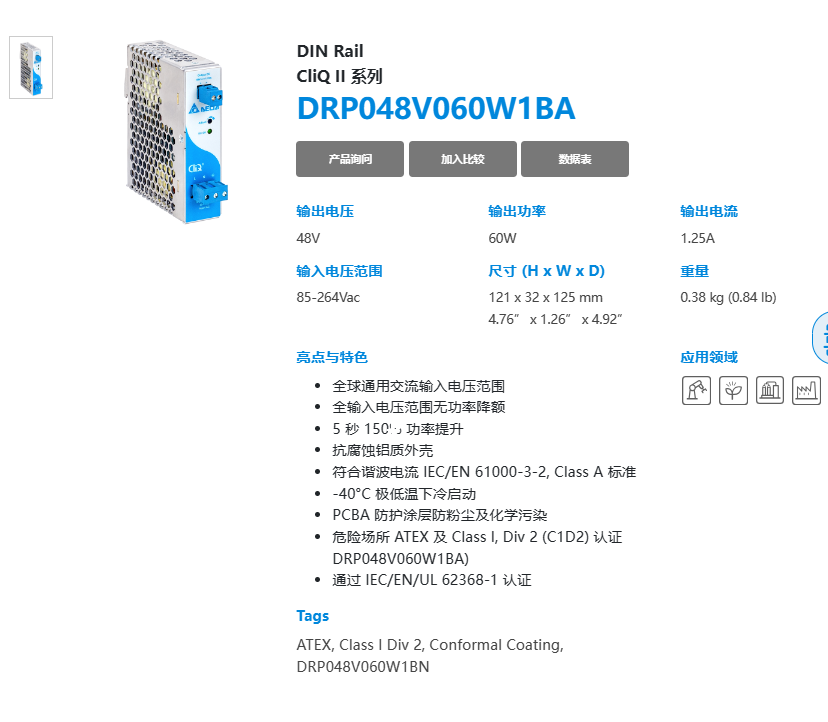 | 輸出 | DRP048V060W1Bp | DRP048V120W1Bp | DRP048V240W1Bp | DRP048V480W1Bp | |