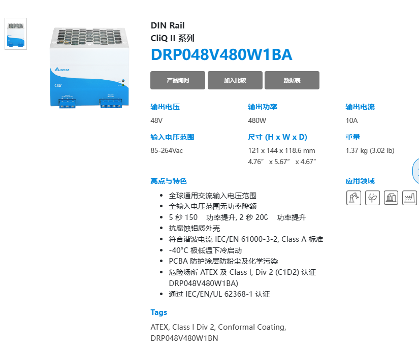 | 輸出 | DRP048V060W1Bp | DRP048V120W1Bp | DRP048V240W1Bp | DRP048V480W1Bp | |