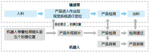 - 應用臺達水平關節機器人 (SCARA)帶著 CCD 檢測鏡頭檢查產品五個面,并自動更正點位