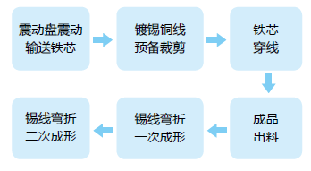 - 自動(dòng)將鍍錫銅線穿過中空鐵芯,并彎折成形