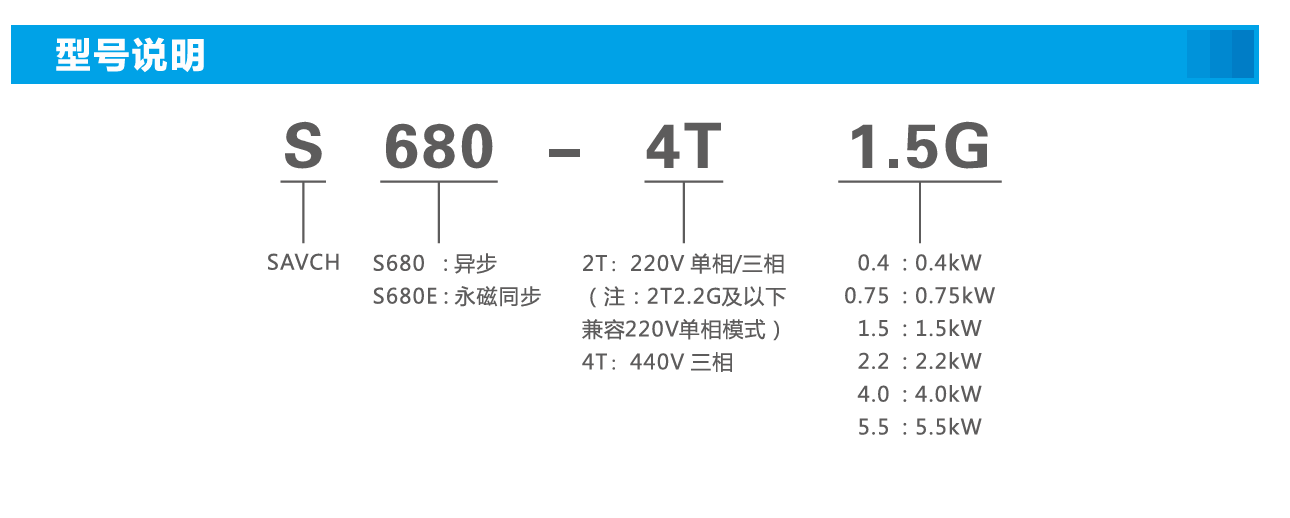 | 型號(hào)(S680-4T***G) | 0.75 | 1.5 | 2.2 | 4.0 | 5.5 | ||
