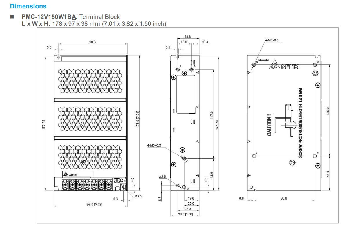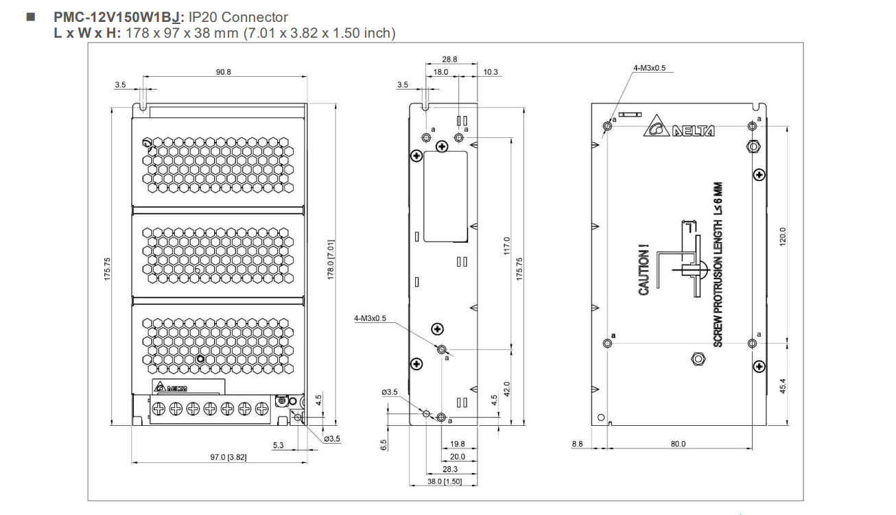尺寸178 x 97 x 38 mm7.01” x 3.82” x 1.50”