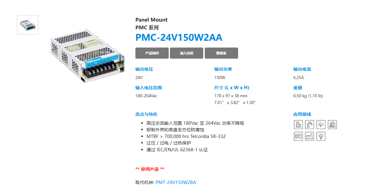 | 輸出 | PMC-05V015W1AA | PMC-12V150W1B | PMC-12V600W1BA | |