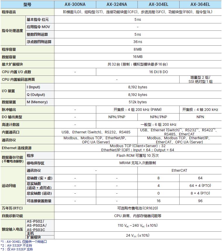 - AX-308E?/?AX-316E?/?AX-332E CPU可支持8?/?16?/?32軸EtherCAT (AX-332E 同步時間 1ms@32軸)